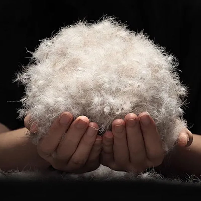 Vi väljer de dunproducerande kärnområdena på gråankans buk, hals och vingar och bearbetar dem genom en förfinad kamningsprocess för att helt behålla den naturliga "vassdunblommans"-strukturen. 90 % av fyllningen är grå ankdunsfiber med hög renhet, vars sfäriska yta är fördelad med ett tätt nätverk av mikronstora triangulära porer som bildar ett luftisoleringsskikt med dynamisk temperaturreglering. När omgivningstemperaturen fluktuerar expanderar eller drar dunfibrerna automatiskt ihop sig med förändringar i kroppstemperaturen, absorberar effektivt de varma och fuktiga gaserna som släpps ut av människokroppen, samtidigt som de effektivt blockerar infiltrationen av kall luft utifrån, vilket uppnår exakt temperaturkontroll dygnet runt. Jämfört med vanliga fjäderfyllningar har den naturliga animaliska proteinfibern i gråankdun bättre fluffighet och spänst. Samtidigt som den ger effektiv värmebevarande prestanda, minskar den avsevärt viktbördan av kläder, vilket säkerställer att bäraren får en komfortupplevelse på professionell nivå.