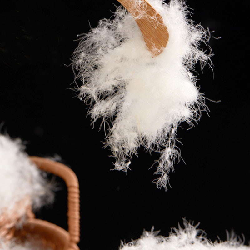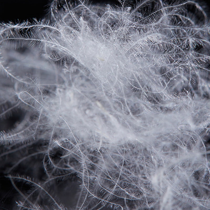 Ursprunget från ankans buk, hals, vingar och andra högkvalitativa dunproducerande delar, har dunet en naturlig vassliknande form med utmärkt fluffighet; kompletterat med exakt proportionerade flagnande fjädrar, bygger den en tredimensionell temperaturlåsande struktur. Som en naturlig animalisk proteinfiber är dunkulans struktur tätt täckt med miljontals triangulära porer i nanoskala, vilket bildar ett dynamiskt andningssystem. När det är varmt sträcker sig fibern för att frigöra värmeenergi, och när det är kallt krymper den automatiskt för att låsa in värmen. Samtidigt som den effektivt absorberar kroppens avledda värme, blockerar den inträngningen av extern kall luft för att uppnå intelligent temperaturkontroll i alla väder. Lätt, mjuk och varm, nära kroppen utan tryck.