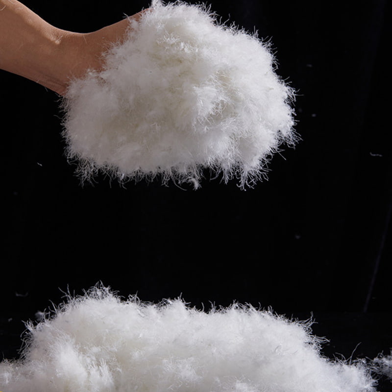 Det naturliga dunet kommer från de kärnproducerande områdena för vita gäss - buken, halsen och vingarna, och det naturliga dunet har en fluffig struktur, som är vetenskapligt matchad med de flagnande fjädrarna för att bilda en utmärkt värmebevarande kombination. Som en high-end animalisk proteinfiber är varje gåsdunfiber täckt med ett triangulärt pornätverk i nanoskala. Denna exakta struktur ger den utmärkta temperaturkontrollegenskaper och kan intelligent justera fibergapet enligt omgivningstemperaturen för att bilda ett dynamiskt temperaturkontrollsystem. När värmeenergin som avges av människokroppen kommer i kontakt med dunskiktet, kan porstrukturen effektivt absorbera värmen och bilda en värmecykel, samtidigt som man bygger en flerdimensionell värmeisoleringsbarriär för att effektivt blockera inträngningen av kall luft och skapa en långvarig varm bärupplevelse.