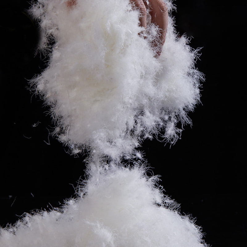 Det naturliga dunet kommer från de kärnproducerande områdena i buken, halsen och vingarna hos vita gäss av hög kvalitet, och det naturliga dunet presenterar en unik form av ömtåliga klasar som vasshalsar, som bildar ett gyllene snitt med de flagnande fjädrarna. Som en sällsynt animalisk proteinfiber är ytan på varje gåsdunfiber tätt täckt med miljontals triangulära porer i nanoskala. Dessa exakta porer är som mikrotemperaturkontrollenheter som intelligent kan justera fibergapet enligt omgivningstemperaturen för att bilda ett dynamiskt temperaturkontrollnätverk. När den varma andetag som naturligt avges av människokroppen kommer i kontakt med det nedre lagret, låser porstrukturen effektivt in temperaturen genom adsorption på molekylnivå, och konstruerar samtidigt en tredimensionell värmeisoleringsbarriär, som effektivt blockerar invasionsvägen för extern kall luft, vilket ger en vårdupplevelse med konstant temperatur i alla väder.