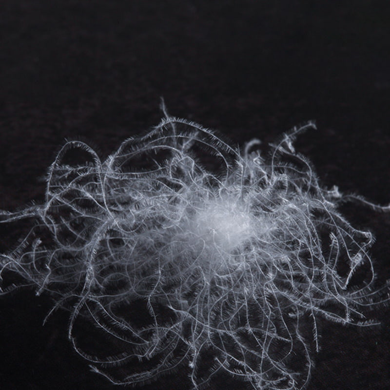 Det naturliga dunet kommer från de kärnproducerande områdena i buken, halsen och vingarna på utvalda vita gäss, och det naturliga dunet har en delikat vassliknande klungad struktur, som bildar ett vetenskapligt förhållande till de flagnande fjädrarna. Som en modell av high-end animalisk proteinfiber innehåller varje gåsdunfiber tiotals miljoner mikrotriangulära porer. Dessa exakt arrangerade porer i nanoskala har intelligenta temperaturkontrollegenskaper och kan autonomt justera fibergapet med förändringar i omgivningstemperaturen för att bilda ett dynamiskt temperaturkontrollsystem. När värmeenergin som avges av människokroppen vidrör nedskiktet, absorberar porstrukturen snabbt värmen genom kapilläreffekten, samtidigt som den bygger en värmeisoleringsbarriär på flera nivåer för att effektivt blockera inträngningsvägen för extern kall luft och säkerställa en konstant temperatur och behaglig upplevelse.